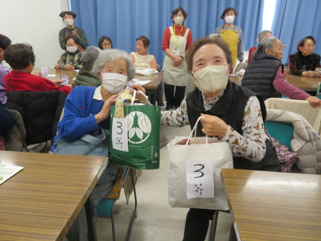 みなさんドキドキしながらビンゴカードとにらめっこ。楽しく景品をゲットしていただきました。